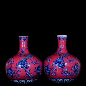 明宣德青花胭脂红花鸟纹天球瓶41x35 厘米