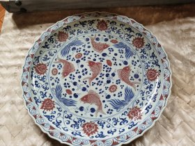 明代青花釉里红花卉大瓷盘