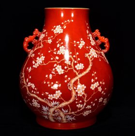 清乾隆矾红花鸟纹梅瓶