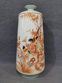 艺术瓷厂 兰谷幽香 精工影青釉矾红花鸟赏瓶