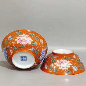 清雍正珐琅彩珊瑚红花卉碗