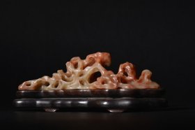 清 寿山石红花芙蓉镂空山石形笔架 总高7厘米 总长19厘米