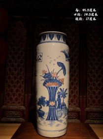 清代青花釉里红花供筒瓶,器型漂亮,