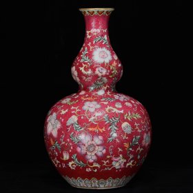 清乾隆粉彩胭脂红花卉纹葫芦瓶,高41厘米,直径24.5厘米、