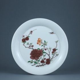 清康熙 釉里红花卉纹盘 高度2.4cm,直径19cm,底径12.5cm