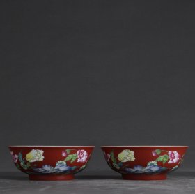 清代雍正御制珊瑚红花卉碗