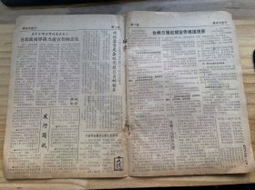 解放日报1973年4月10日(4开四版) 我们工人要大干。 市仪表电讯系统生产显著增长。 市轻工系统夺得革命生产新胜利。 化工工人鼓足干劲多增产。 多装快跑完成客货航运繁重任务。 欲穷千里目更上一层楼。 世界是运动着的物质。