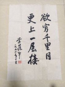 B45049号书法 68×46cm 作者:爱新觉罗启骧 书法 王之涣 登鹳雀楼 白日依山尽,黄河入海流。欲穷千里目,更山一层楼。 庚寅年春 爱新觉罗启骧书