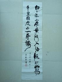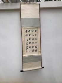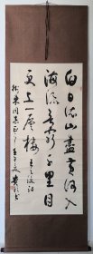 2281号卷轴书法 王之涣 登鹳雀楼 画心67×39cm 作者:郭新华 白日依山尽,黄河入海流。欲穷千里目,更上一层楼。 唐王之涣诗 登鹳雀楼 戊戌初夏于岛城 墨玉