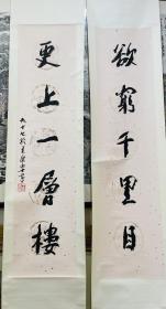李半黎 书法对联《欲穷千里目,更上一层楼》软片136*34厘米*2——四川省书法家协会主席 四川省诗书画院副院长 四川省文联常委 兰亭书会名誉会员