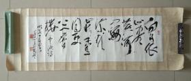 中书协副主席,顾问,聂成文老师,书法一副,欲穷千里目,更上一层楼。寓意好!四尺横幅。保真。图二为作品原图,图一为模拟裱框图。最后一图为笔会创作现场新闻报道图。