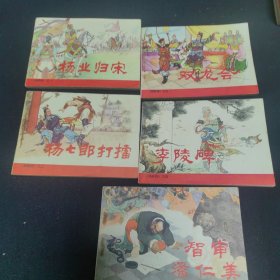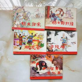 连环画 《杨家将》五册全 1、杨业归宋1981年 2、杨七郎打擂1981年 3、双龙会1981年 4、李陵碑1983年 5、智审潘仁美1981年一版一印