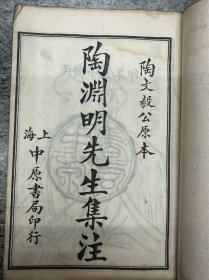 民国十七年 上海中原书局白纸精印 陶渊明先生集注 一函四册全