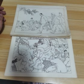 连环画选页 锻炼4张 、沙家浜7张、 二十春4张 、白求恩4张、 穷棒子扭转乾坤5 张 、红日5张 、红岩4张 、年轻的一代4张、 丰收之后2张 共 39 张,少穷棒子 4