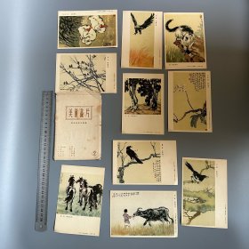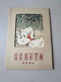 五十年代老明信片画片:徐悲鸿彩墨画美术画片(1套10张全)