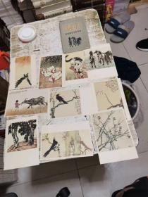 【老画片】50年代美术画片 徐悲鸿先生墨宝 无格明信片(1封套+10张全)