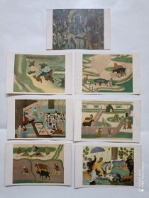(明信片)1955年敦煌壁画——敦煌壁画中的历代人民生活画 一套20枚全,无格明信片张张有版权 1版1印
