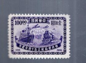 民国邮票一枚;邮政总局成立五十周年纪念【1896---1946】壹佰圆、未使用