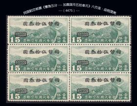 民国邮票《五百元--加盖10元》限台湾贴用。四方联:(邮001)---