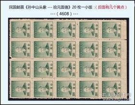 民国邮票《孙中山头象---拾元面值》20枚一小版:后面有几个黄点(4608)