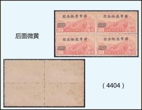 民国邮票大东版《孙中山---叁千元》四方联(带版名):稀缺品种(4276)