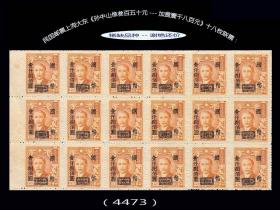 民国邮票上海大业版《孙中山像叁百五十元---加盖壹千八百元》十八枚联票:(4473)