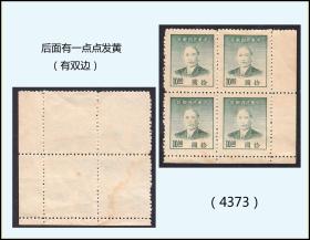 民国邮票《孙中山头象---拾元》后面有一点点发黄。四方联(有双边):(4373)