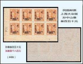 民国邮票上海大业版《孙中山像叁百五十元---加盖壹千八百元》八方联:(4486)