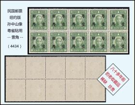 民国邮票纽约版《孙中山像---粤省贴用壹角》十枚一版:稀缺独特品种,谢绝还价(4434)。