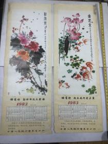 1984年 名家国画挂历 :画苑撷英 【全13张 冷枚 麻姑献寿图轴 ,袁耀 拟阿房宫山水图轴 ,吴昌硕 牡丹图轴,郑板桥 墨竹图轴,吕纪 桂菊山禽图轴 ,任伯年人物图轴, 等 】 G 153