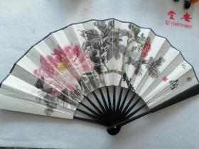 国画扇面 一把 牡丹富贵 图