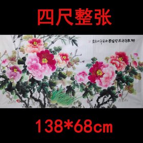 【八千多条好评】纯手绘保真销售】实力派牡丹画家赵汉昭先生精品-《花开富贵-佳名唤作百花王》六尺整张未装裱国画牡丹宣纸画芯,纯手绘精品,一图一拍所见即所得。