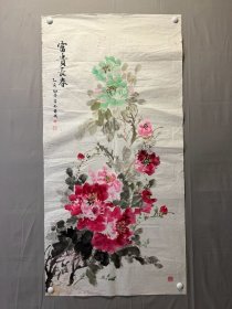 【八千多条好评】广西名家韦仲传先生精品·《早春争秀富贵满堂》纯手绘作品,未装裱宣纸画芯四尺整张牡丹国画,构图大气,实为不可多得之佳品。一图一拍所见即所得。