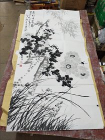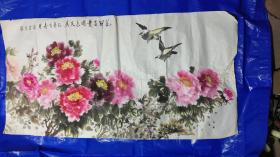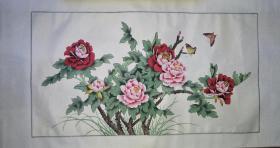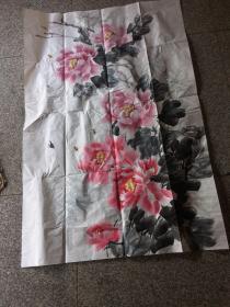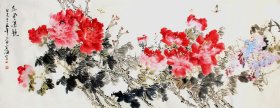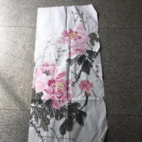伍洲国画《牡丹图》,136CM*68cm