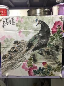 孔雀牡丹图斗方