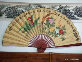 王室国画巨扇牡丹富贵图