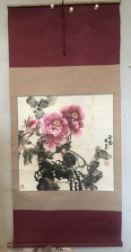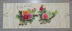 名人国画牡丹图 落款不识 尺寸:136*69cm