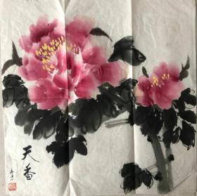 国画 天香 牡丹 1平尺 落款 盖章 见图