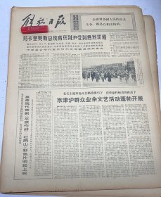 革命现代京剧《平原作战》《杜鹃山》彩色片明起上映“革命现代越剧半蓝花生”彩色影片和十三部新拍摄的纪录片和照片同时上映2*京津沪群众业佘文艺活动蓬勃开展3*反映重大题材,推动历史前~方耘《解放日报》