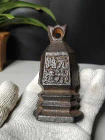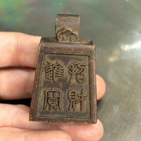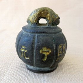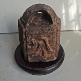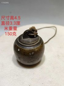 日本回流老铜秤砣,尺寸重量如图所示,重184.8克。铜质厚重,表面有自然包浆,顶部带环扣,底部平整。砣身有字样,品相完好,适合收藏把玩。老物件,有正常使用痕迹,介意勿拍。