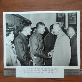 超大尺寸:1959年,刘少奇、朱德接见全国群英会主席团成员,和时传祥、罗淑珍( 北京邮电局投递员,后任邮电部副部长,创造投递180万件邮件无差错的最高纪录)张百发握手(袋1262--84号)