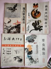 美术技法丛书《鹰与翠鸟画法》《草虫画法》《韩美林动物画法》《怎样画竹子》4本合售