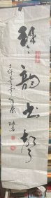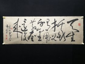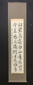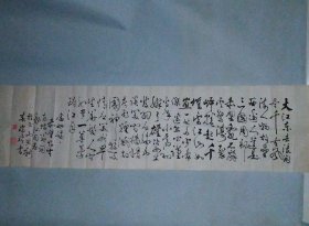 B41445号书法 沈鹏诗 返故里之一 130×35cm 作者:盛明清,江苏省宜兴市张渚高级中学,宜兴市老年书画协会会员。浩荡长江入海奔,奔流到此磕掀翻。 髫龄爱听乡贤事,白发今犹问险滩。