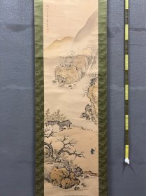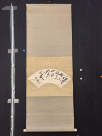 书法茶挂扇面《居竹》,居竹无人俗了一日此君可无,清凡?甲71回流手寫書法立軸,纸本老裱/绿釉瓷质軸頭,画芯44×20厘米,整轴47×130厘米,品相如圖老旧黄斑污渍折痕折裂破损等