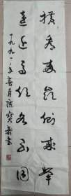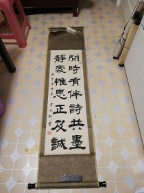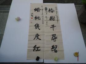 春树千寻碧 蟠桃几度红 XX同志雅正 国贤书法对联一幅 包老包真,软片 未装裱,尺寸:130*32厘米*2。详见书影。放在右手边柜台里上至下第三层字画2024.11.28整理。2023.3.16分袋。