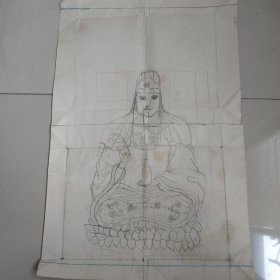 (早期) 观世音菩萨 白描画一张,51/33cm