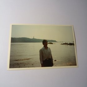 老照片–90年代青年在浙江舟山海边留影(2)(对岸山上南海观世音菩萨依稀可见)