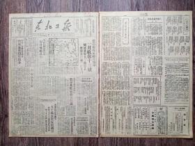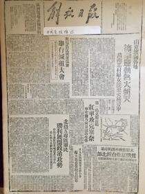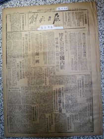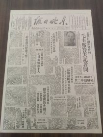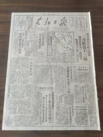 东北日报1946年10月8日 发表:毛主席像;关于目前中国时局毛主席答美记者问;收复西丰战役;平汉平绥连打胜仗慰劳运动热火朝天;在农村里;长春在灾难中;读张学良近作.田汉;