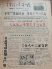 《河南青年报》【(开封汽轮机厂)青工楚金池目光远大不断革新制成十三套冲垫圈工具,一天完成三年零七个月任务;虞城青年热火朝天闹春耕;长葛县和尚桥青年试验场照片;揭穿美帝假和平(漫画)】