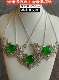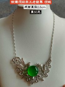 103_银镶顶级冰种帝王老绿翡翠项链,水头足,质地细腻纯净无瑕疵,颜色为纯正、明亮、浓郁、非常漂亮。重50克